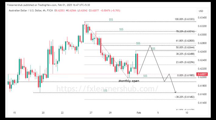 Meanwhile, expectations of an RBA rate cut in February further pressure the Aussie, while iron ore prices hitting yearly highs offer limited support. With the Fed remaining cautious on rate cuts, the US Dollar retains an edge, keeping AUD/USD’s upside limited.