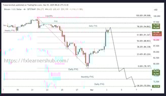 Expectations: Price is expected to decline, targeting key liquidity zones and fair value gaps (FVGs).