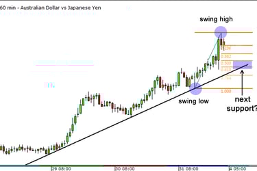 Select Swing Points: Identify significant highs and lows to anchor Fibonacci retracement or extension levels.