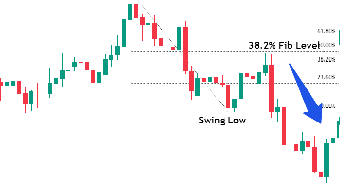 Once the trend is identified, anchor Fibonacci retracement levels from the swing high to the swing low (in a downtrend) or from the swing low to the swing high (in an uptrend).