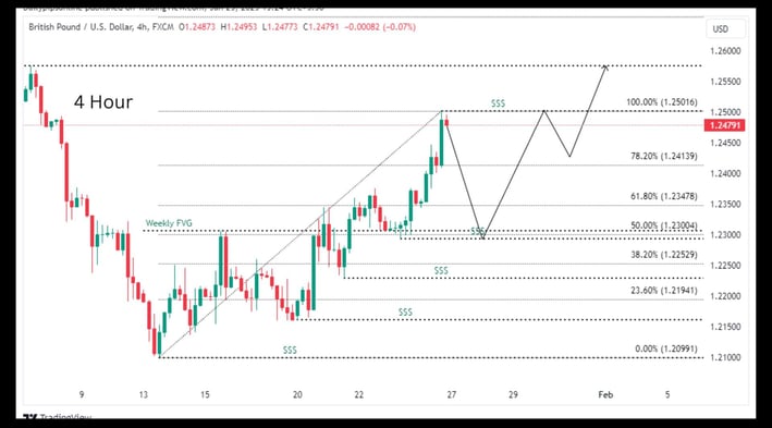 The GBP/USD pair has recently rallied, buoyed by stronger-than-expected UK Manufacturing and Services PMI reports. The Composite PMI edged up to 50.9 in January from 50.4 in December, indicating modest economic growth.