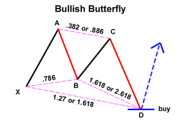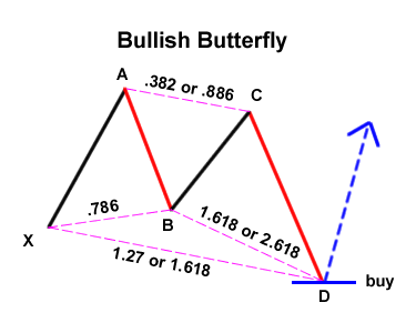 Consider a bullish Butterfly pattern (expecting an upward reversal):