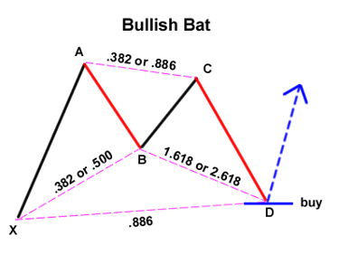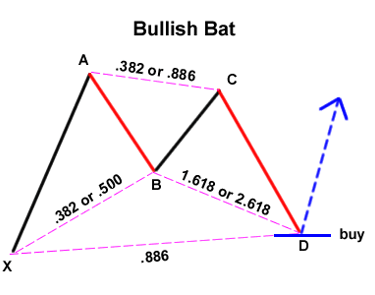 Consider a bullish Bat pattern (expecting an upward reversal):