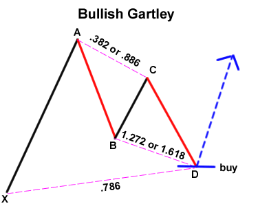 Consider a bullish Gartley pattern (expecting an upward reversal):