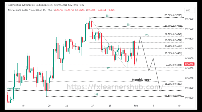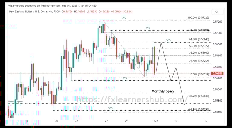 Primary Targets: 0.5683 (H4 Liquidity) and 0.5704 (H4 Liquidity).