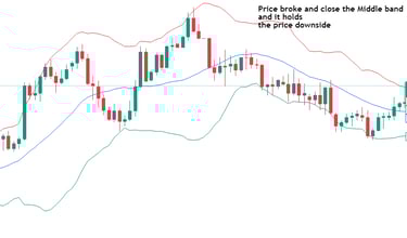 Lower Band Breakout: If the price breaks below the lower band and stays below it, it can indicate the start of a strong downward trend.