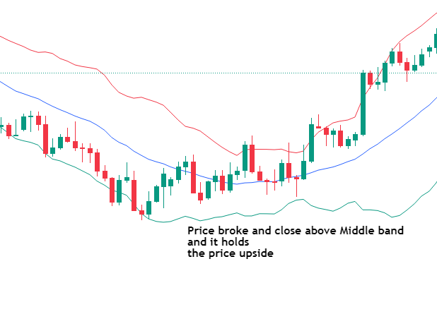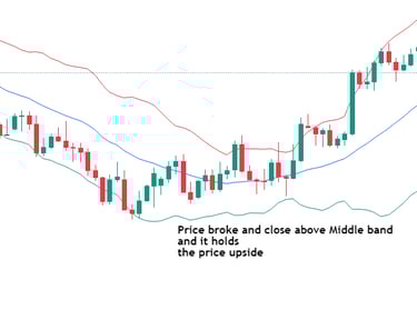 Upper Band Breakout: If the price breaks above the upper band and stays above it, it can indicate the start of a strong upward trend.