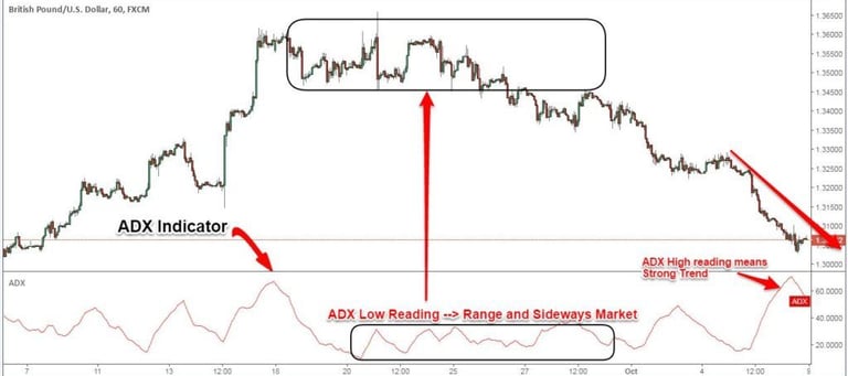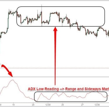 If the ADX is falling and below 20, it indicates that the trend is weakening or the market is moving sideways.