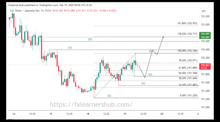Short setups become valid near 152.59 and 152.69 if a reversal is observed.