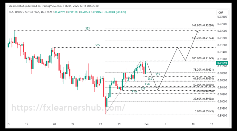 Primary targets: 0.9115 (H4 Liquidity) and 0.9153 (H4 Liquidity).
