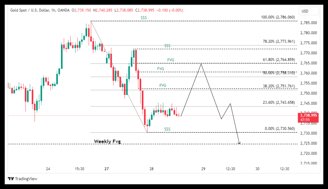 Watch for price action rejections at the following resistance zones:2752 (H1 FVG)