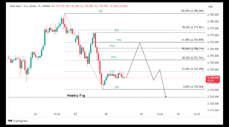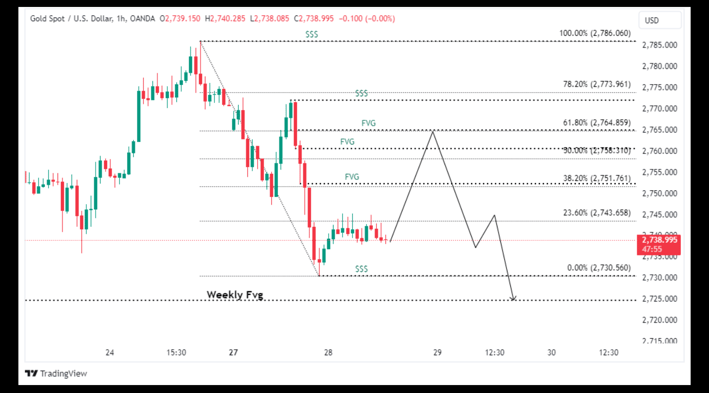 Monitor price action at the following support levels for potential reversals:2730 (H1 Liquidity)