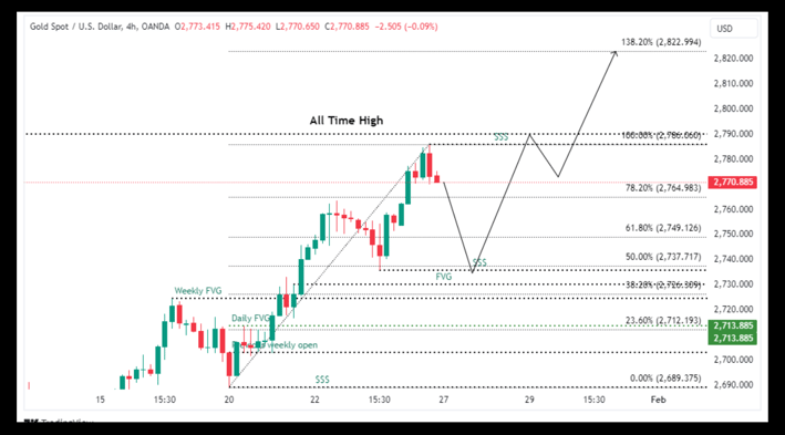 $2,790 (All-Time High): A potential liquidity grab may occur here, signaling exhaustion.